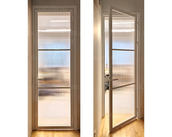 Стильное и надежное решение для вашего интерьера! Межкомнатная дверь с профилем 55х36 мм выполнена из прочных материалов и покрыта устойчивой порошковой краской, которая сохраняет цвет и защищает от царапин. Рифленое стекло добавляет элегантности и обеспечивает приватность, пропуская мягкий рассеянный свет. Идеальный выбор для создания уютной и современной атмосферы в любом помещении.
