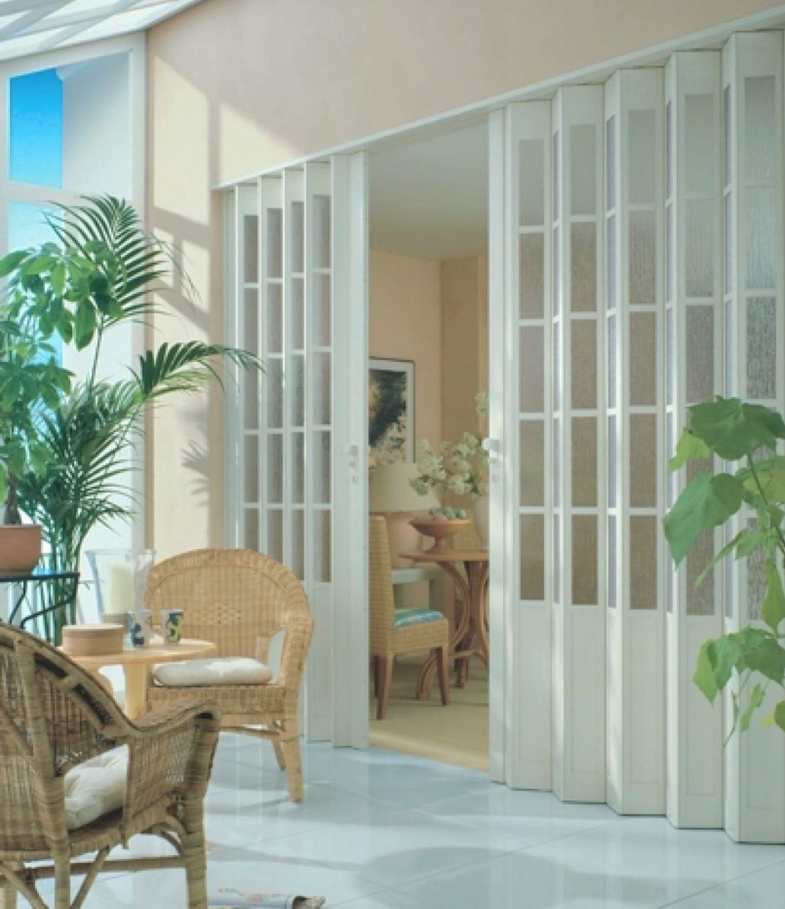 Нужен эконом-вариант? Можем предложить продукцию наших партнеров - складные перегородки-гармошки, изготовленные из пластика. Данные перегородки также очень эстетичны, отлично впишутся в ваш интерьер. Чаще всего они проходят экспертизу "Мосгаза", хотя тут полной гарантии дать не можем, в отличие от нашей продукции из алюминия и стекла.
